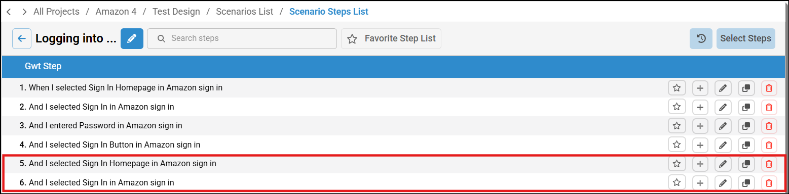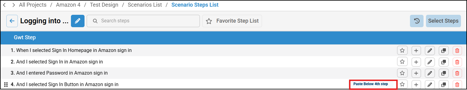 The Copy Scenario Steps List feature allows you to duplicate a complete set of scenario steps from one Scenario List and paste it into another. This is especially useful when you need to replicate the same set of steps across multiple scenarios without recreating them manually.