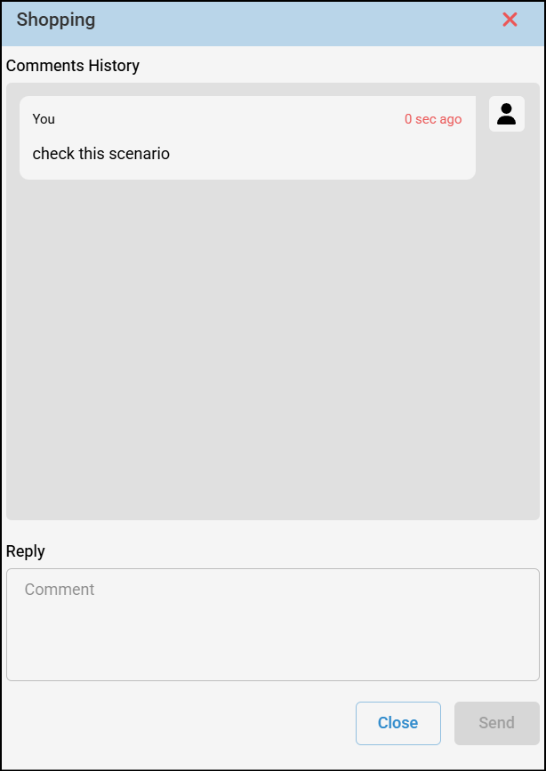 - You can add comments in the Comments field, share them with other users, and click Send for the comments to be shared.