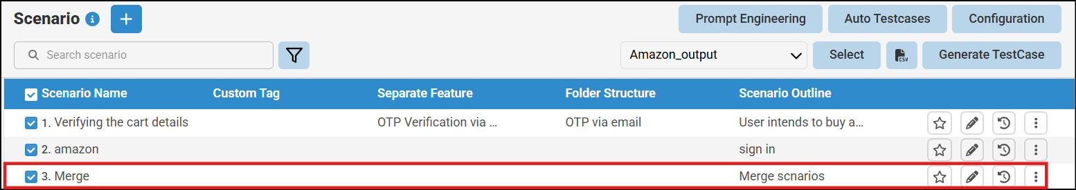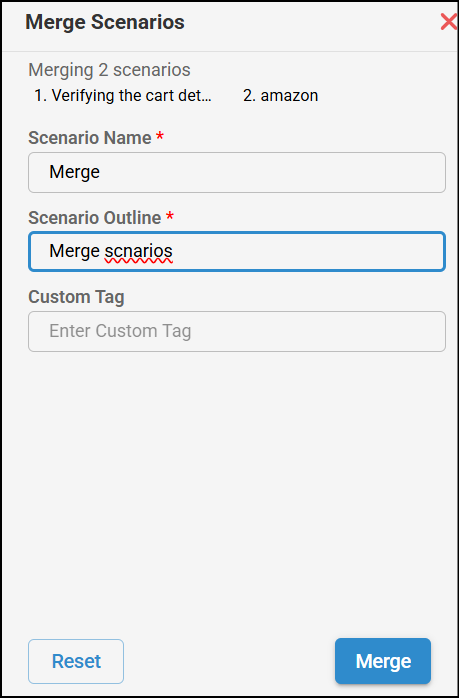 - The selected scenarios will be merged, and their steps will be combined in sequence.