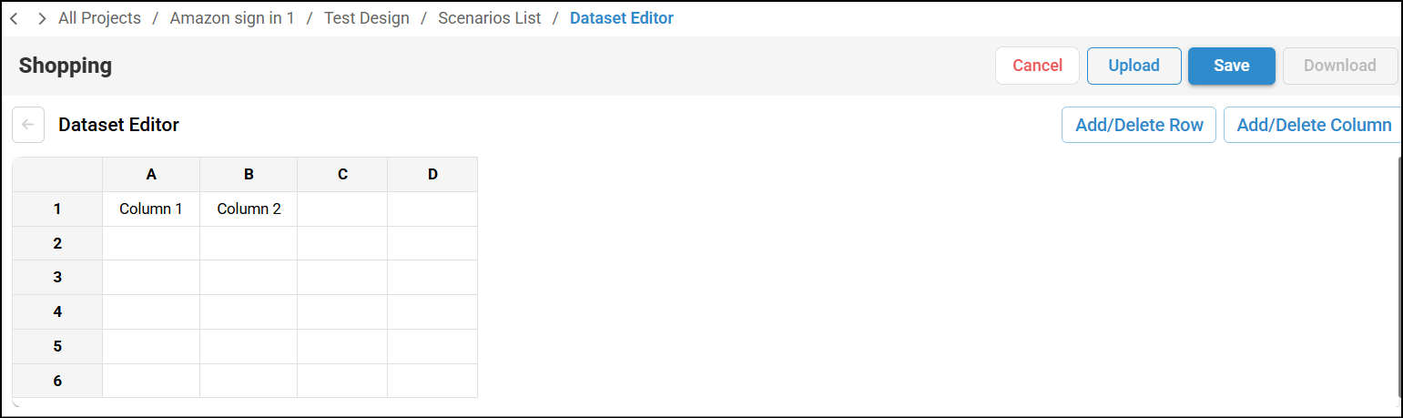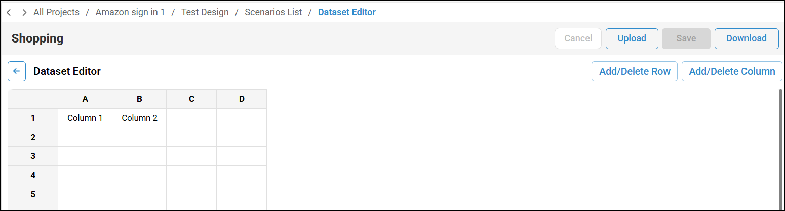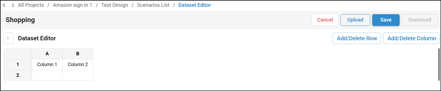- Upload - You can upload datasets in the CSV format. Ensure to select the same scenario which was created using Record Scenario feature.