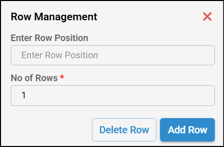 - Click on Add/Delete Row and Add/Delete Column buttons to add them, enter the Row or Column position, enter No of Rows or Columns and click on delete or add as needed.