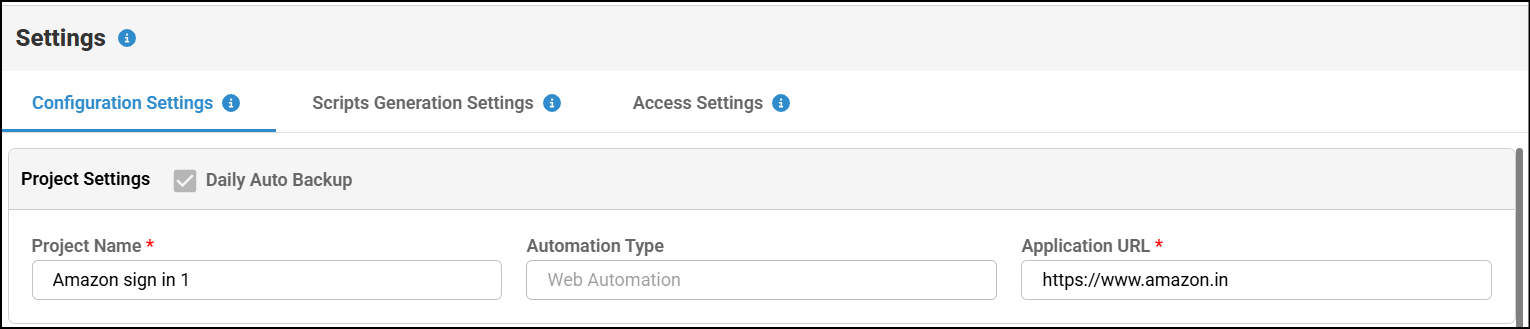 ![]() | Displays Automation type entered during creation of the project. By default, this textbox is not editable. |