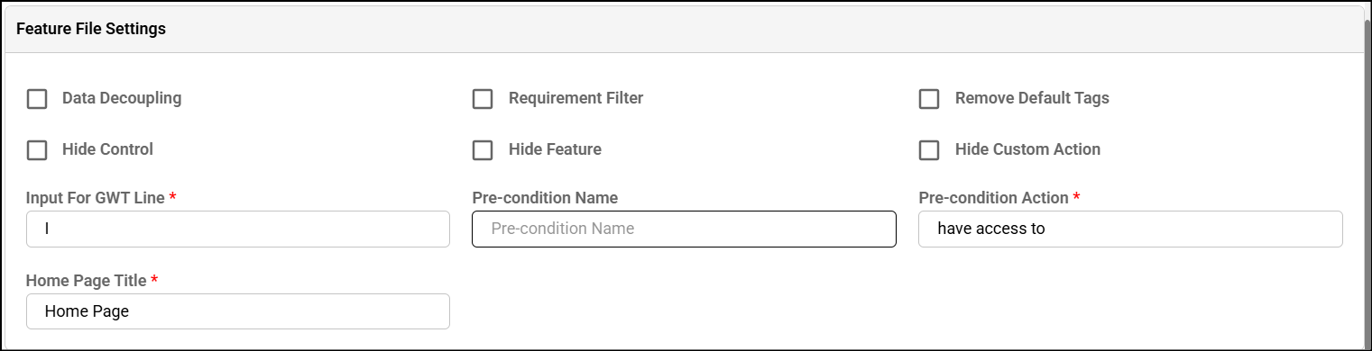 | Home Page (Optional) | You can enter or modify a Home Page title. after generating test case, Pre-condition will be available in _updated.xlsx |