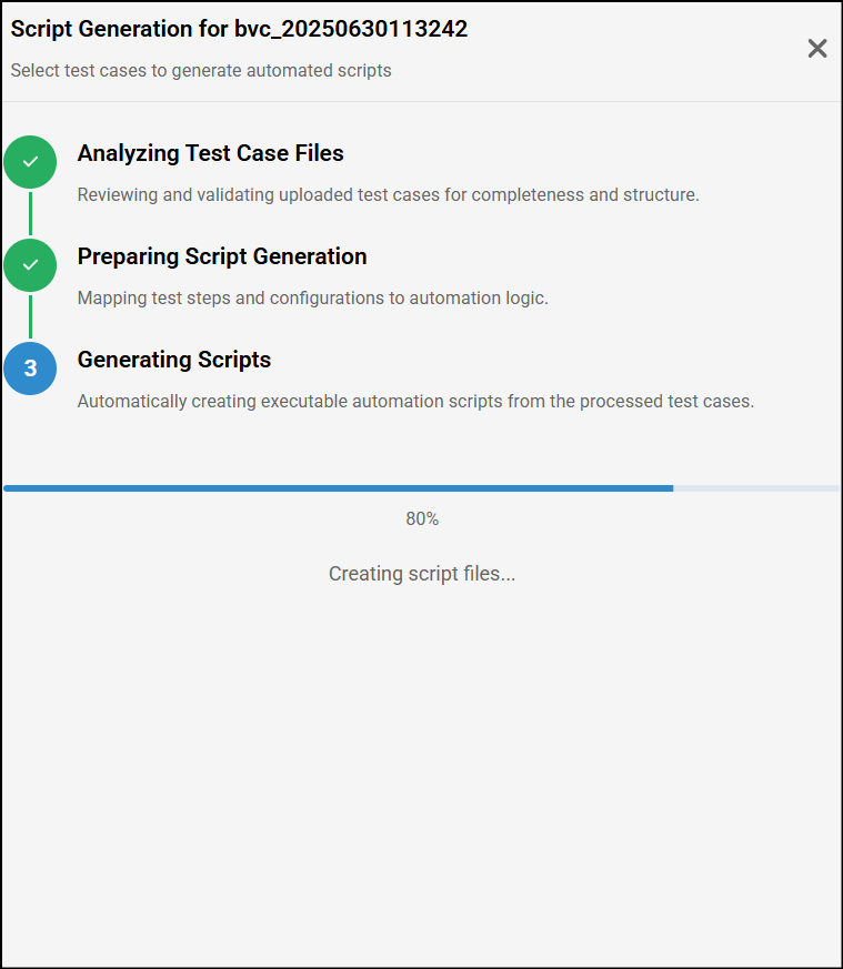 - Ensure to select both the files generated in the Test Cases folder. If you happen to select either Feature File or Spreadsheet file in XLSX/XLS format, then you will not be able to generate.