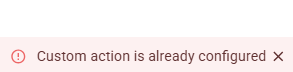 If you attempt to create a duplicate custom action, a warning message will be displayed indicating that the custom action is already configured.