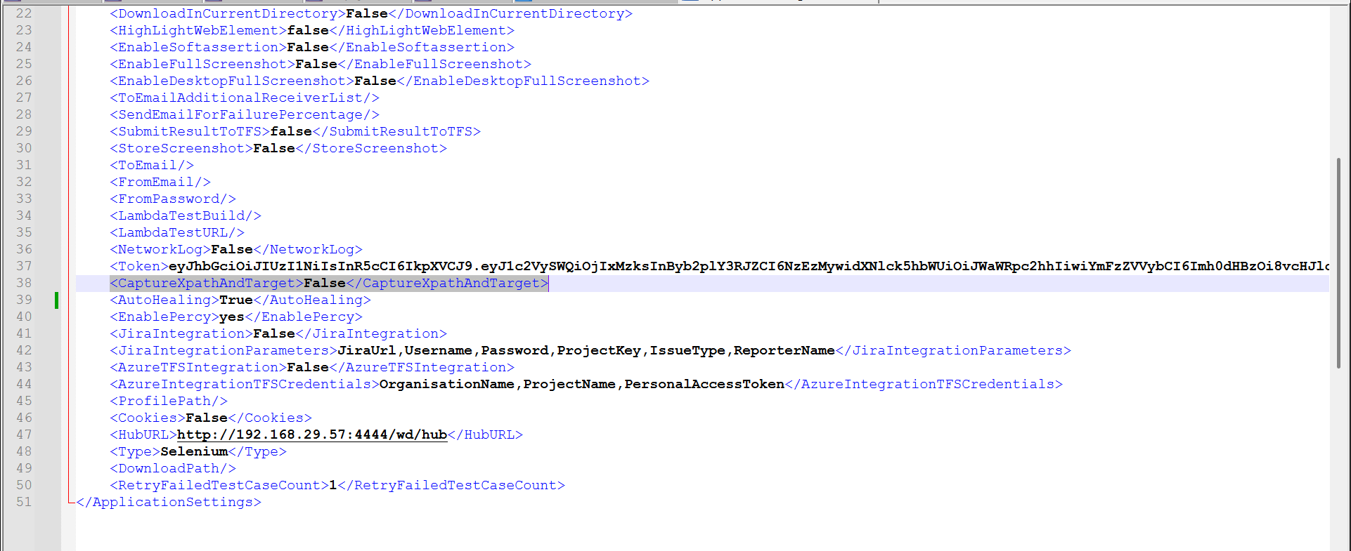 - Open the ApplicationSettings.xml file and locate the setting related to the auto healing feature. Set AutoHealing parameter to True to enable auto healing feature, if you want to capture XPaths and target we have to set CaptureXpathAndTarget tag to true.