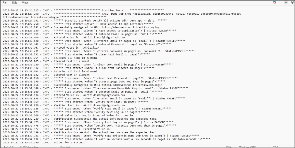 - After execution, a logger file will be created in the report folder, and the log file will capture execution details with timestamps and log levels.