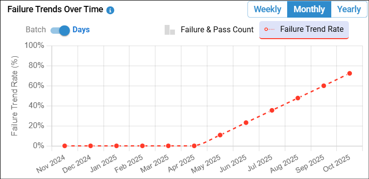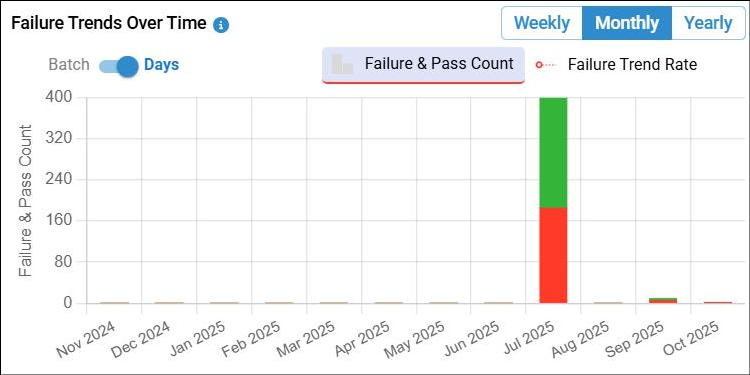 - Failure trend graph for these batches are shown when user selects Failure Trend Rate under Batch.