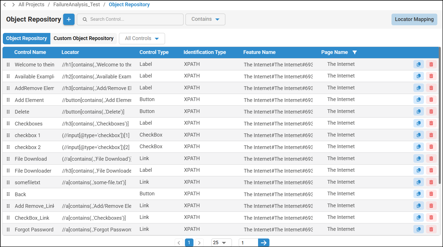 - Locator which contains XPath of controls