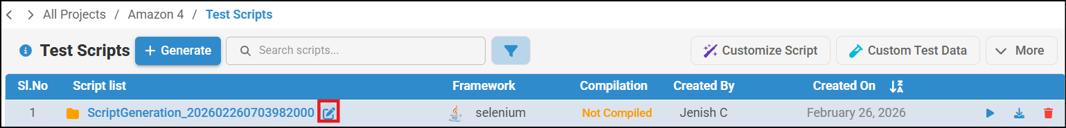 - Hover rover script generated folder and edit icon will be visible.