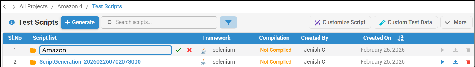 - You can rename the generated script folder and download it.