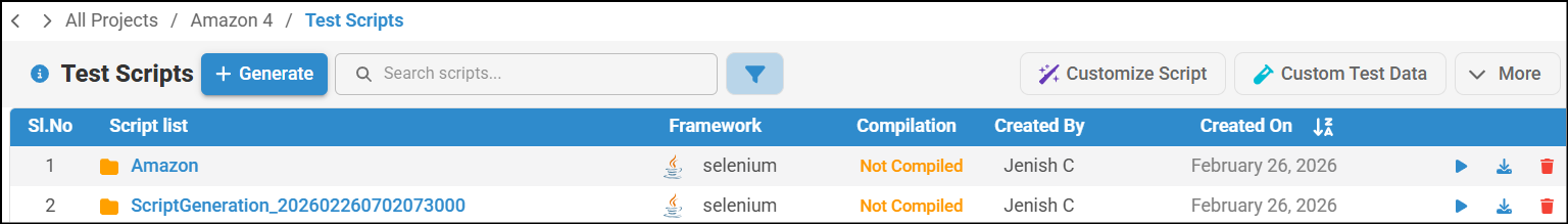 Note that .xls file supports storage up to 7000 rows (GWT lines) of data. You can modify and save the lines, download the file without any issues. - After generating the scripts, you can download, view, compile, and execute them.
