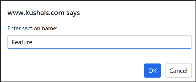 - A pop-up appears to enter the section name. Enter the name and click OK.